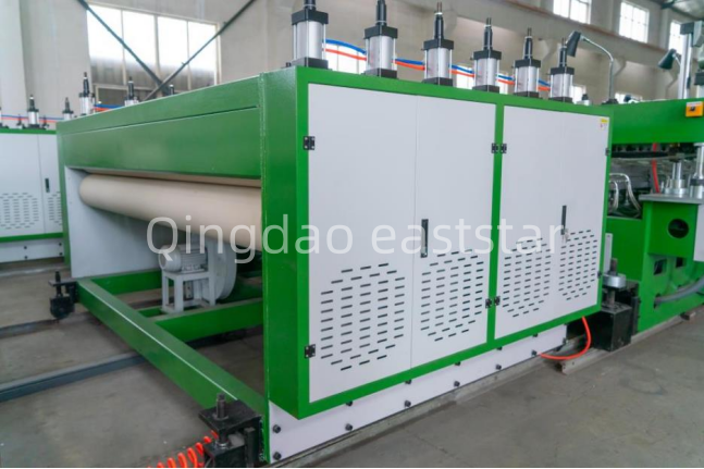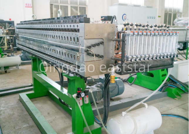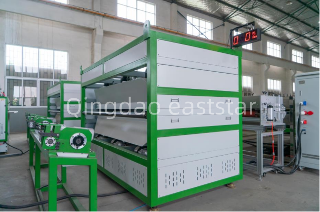 celýZařízení PP mřížkových panelů s otevřenými buňkamizahrnuje také advoustanicový hydraulický měnič sít, avyrovnávací peca asilnývzduchové chladicí zařízení. První trakční stroj je vybaven 6 páry 12 pryžových válců, každý o velikosti plochy válce ¢250x2300 mm, poháněných motorem o výkonu 7,5 kW. Vyrovnávací pec má rozsah regulace teploty 40℃-150℃, rozdělený do 16 zón, aby byla zajištěna rovinnost desek. TheLinka na výrobu dutých desek PPje také vybavena příčným řezacím strojem a stohovací plošinou pro dosažení automatizované výroby.
