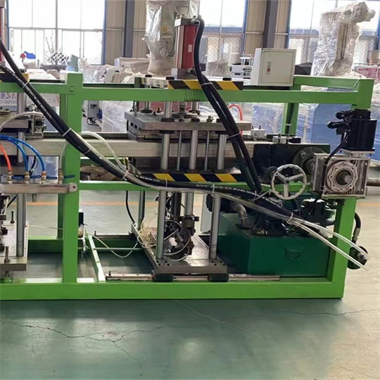 Technické parametry stroje na výrobu výsevních zásobníků PS PET Specifikace šířka použitého plechu: 300~320mm, tloušťka: 0,8~2mm.PS Stroj na výrobu výsevních podnosů na PET Tvarovací plocha (maximum): 400 x 600 mm, pracovní účinnost 15 ~ 20 krát / minutu. Použitý výkon: třífázový čtyřvodičový 380 voltů, maximální výkon 25KW Hydraulický tlak: 100T Vnější rozměr (mm) délka, šířka a výška) 3600mm*980mm*1500mm