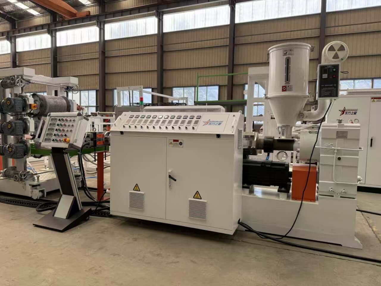 TPU/PE/PP/PS-300 Wide Sheet Extrusion Line je určena pro zpracování pelet nebo drcených směsí TPU, PE, PP a PS. S výrobní kapacitou **60–100 kg/h** zahrnuje tato řada komponenty předních značek jako Siemens a Omron. Vyznačuje se 0,8-3mm listovou matricí, tříválcovým kalandrem a navíjecím strojem, což zajišťuje vysoce kvalitní výstup. Zařízení splňuje přísné normy kvality a obsahuje komplexní technickou dokumentaci pro snadnou obsluhu a údržbu.